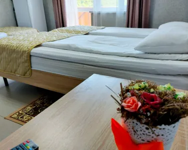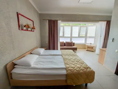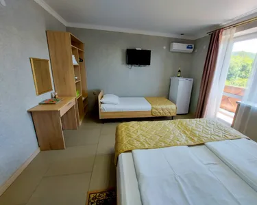 В просторных номерах отеля есть все самое необходимое для комфортного отдыха: качественная мебель, холодильник, кондиционер, сейф, балконы с видом на лес и летнюю террасу.
