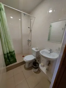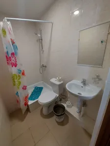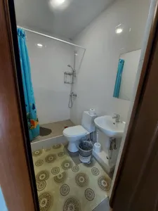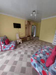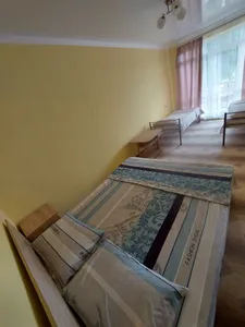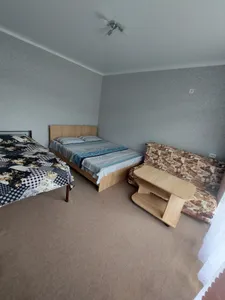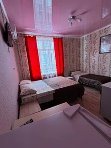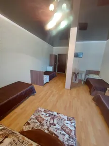 Кухня общая, поэтому как повезет с соседями, нам не повезло, в раковине вечно забивается мусор и стоит вода, и люди проживающие рядом, не обращают на это внимание. Но так как мы были с детьми, приходилось готовить каждый вечер. Не хватало приборов, вилки нарасхват, так как их 8 штук на 40 номеров. Диван в первой комнате тоже давал прикурить, спали бабушка с дедушкой, но при неловком движении диван складывается как раскладушка, что тоже мало приятно на отдыхе, делать этот диван каждый день.