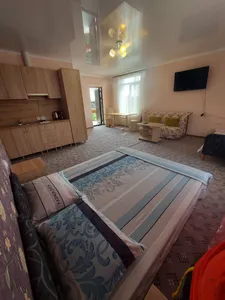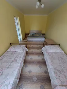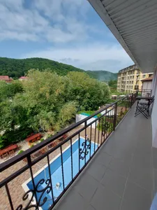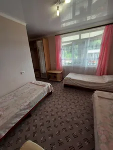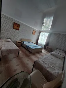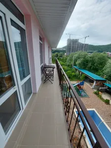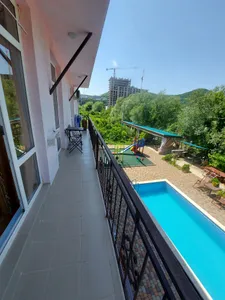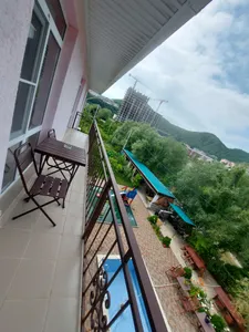 Очень красивый дом, в красивом, живописном месте, от музыки и променада на достаточном расстоянии, так что музыка не мешает спать. У нас был номер улучшенный. Шумоизоляция в номерех, с улицы при закрытых окнах и дверях ничего не слышно, но как храпит сосед за стенкой, очень хорошо слышно. В добавок всю ночь колотит канализация. Может нам так повезло с номером? В первый день были проблемы с водой, но хозяйка быстро решила вопрос. Так же был вопрос по платной парковке, хозяйка сразу дала альтернативу. Кухня общая, поэтому как повезет с соседями, нам не повезло, в раковине вечно забивается мусор и стоит вода, и люди проживающие рядом, не обращают на это внимание. Но так как мы были с детьми, приходилось готовить каждый вечер. Не хватало приборов, вилки нарасхват, так как их 8 штук на 40 номеров. Диван в первой комнате тоже давал прикурить, спали бабушка с дедушкой, но при неловком движении диван складывается как раскладушка, что тоже мало приятно на отдыхе, делать этот диван каждый день. Гостевой дом минут 15 до моря пешком, даже с малышами, дорога безопасная, так как есть проход через трассу под мостом. Хозяйка приветливая, отзывчивая. На территории бассейн, большой не каркасный! Есть зона барбекю и детская площадка. До моря конечно не 600 метров как написано на сайте. В целом, все нормально. Но мне кажется за такие деньги как мы заплатили за номер, должны быть хотя бы полотенца, которые отсутствуют, я уже не говорю про туалетные принадлежности. Мы катаемся не мало, и сравнить есть с чем. Если добавить уборку кухни, полотенца в номере, то смело можно ставить 5 звезд. Но пока этого нет. Машинки стиральной, как написано в номере тоже нет и даже не видно в местах общего пользования. В принципе все понравилось, так как мы ехали искать плюсы, а не минусы.