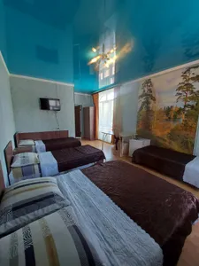 В номерах: двуспальная кровать, шкаф, стулья, прикроватные тумбочки, зеркало, кондиционер, телевизор, холодильник, интернет, балкон (не во всех).