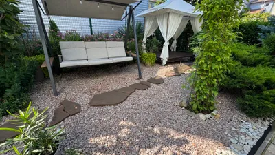 На территории есть оборудованная зона барбекю и уютная беседка, и терраса для проживающих на первом этаже, а также есть места для релакса и уединённого отдыха.